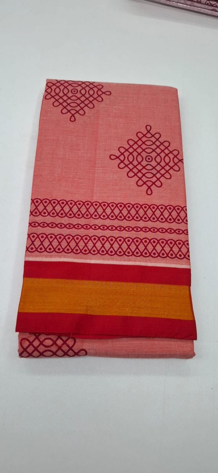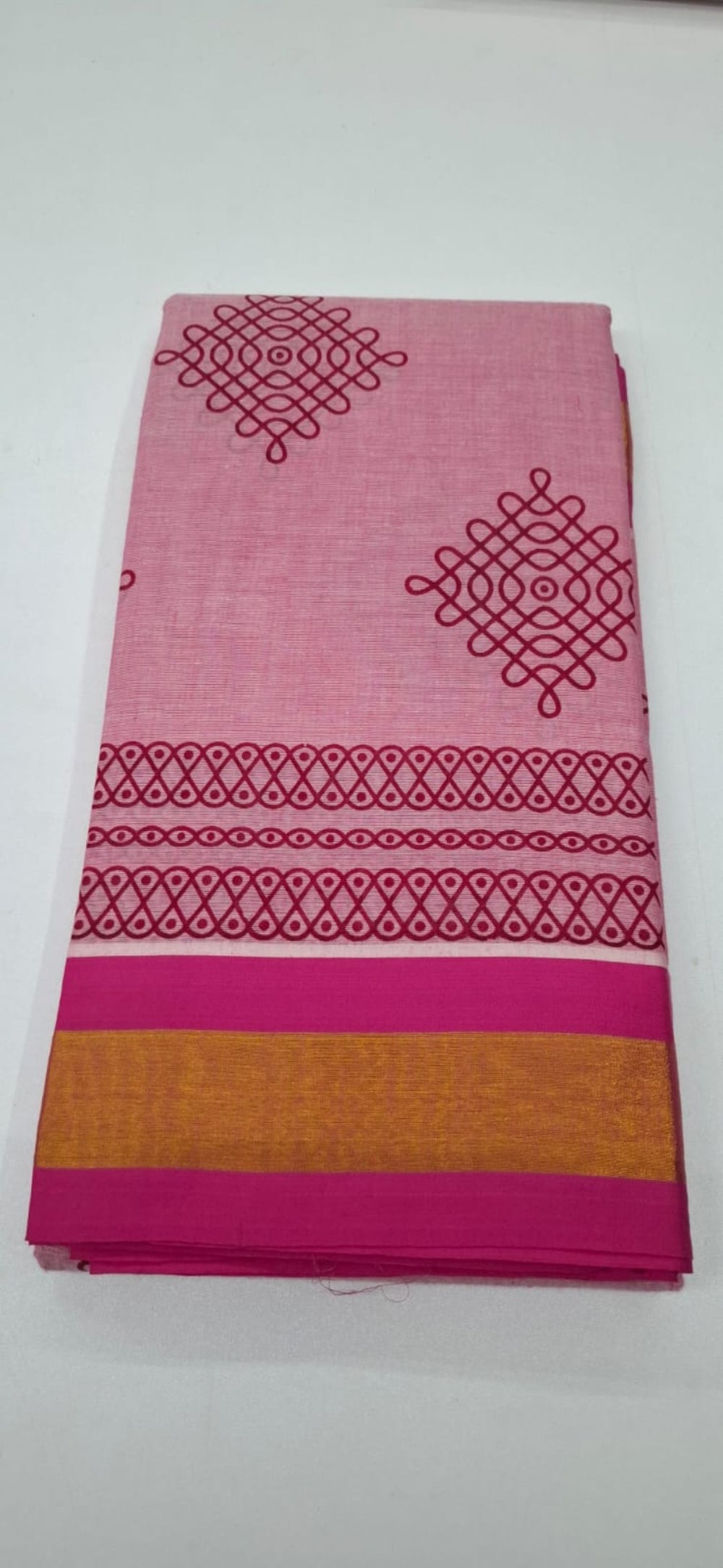 TRADITIONAL PINK COTTON SAREE WITH KOLAM INSPIRED MOTIFS