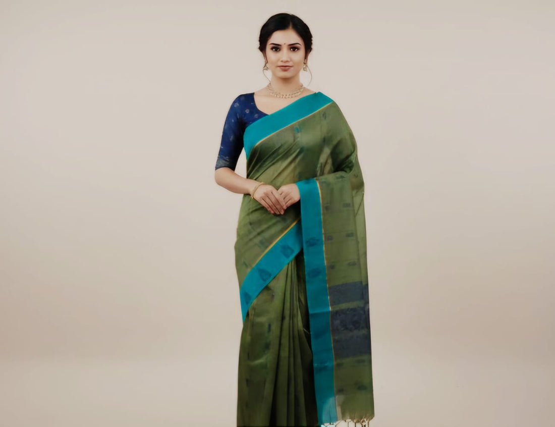 Nayanthara-Inspired Emerald Green Maheshwari Saree