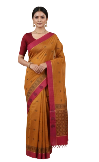 TRADITIONAL PINK COTTON SAREE WITH HERITAGE INSPIRED PATTERNS