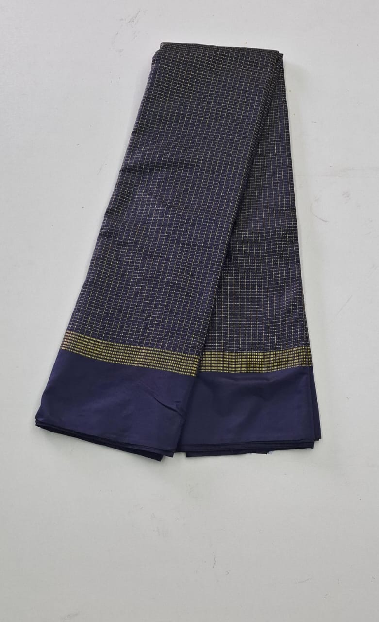 Description:This elegant small checked Arani silk saree features a refined Dark Blue base adorned with...